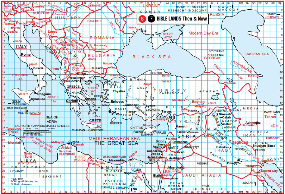 The maps below may help to show how the lands mentioned in the Bible line up with modern day maps.